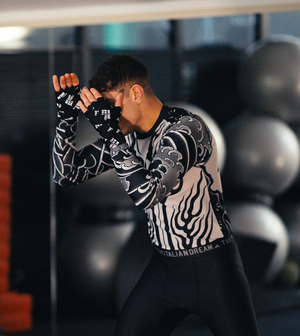 Designed by UFC fighter Marvin Vettori, the composition of the fabrics promotes sweat perspiration and protects both the lower and upper body.